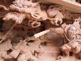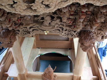 平成18年10月に新調し、まもなく新調記念誌が発刊される板原町地車の見学、撮影という絶好の機会に恵まれました。撮影時間は正午の地車小屋に納めるまでの約2時間、金網の外された緻密な彫刻を最高の撮影環境の中でゆっくりと撮る事ができました。 ここに掲載する写真は多数撮影した中の、ほんの一部ですが近日中に発刊される記念誌を楽しみにしている方もいると思いますので発刊後に続編を地車のコーナーで掲載したいと思います。