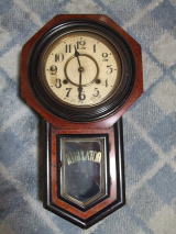| 古時計は会場内で10数点、出ていましたが形の良さと日本製ということでこの時計に決めました。もちろんゼンマイを巻けば時を刻み、時報も響きます。 |
