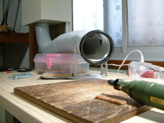 古い換気扇を改造し粉塵対策としました。以前は