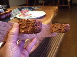 | 帽子掛け第二弾を紹介します。 第一弾では修理のため交換された古い地車彫刻部品を使い、帽子掛けに再生しましたが、彫刻部品に付いた永年の汚れを除去するために