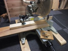 材料の切断はスライドソーで |