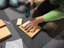 糸鋸の刃を通す穴を開ける |